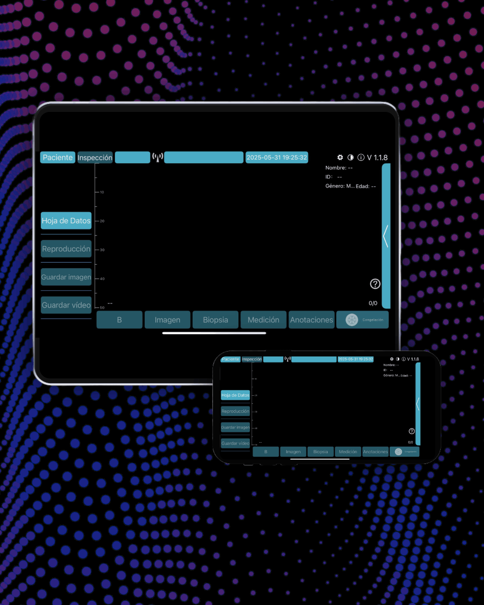 Identifique rápida y eficientemente la anatomía de su paciente en su teléfono o tablet. Obtenga imágenes ultrasónicas en tiempo real, grabe imágenes o videos con nuestro potente dispositivo.