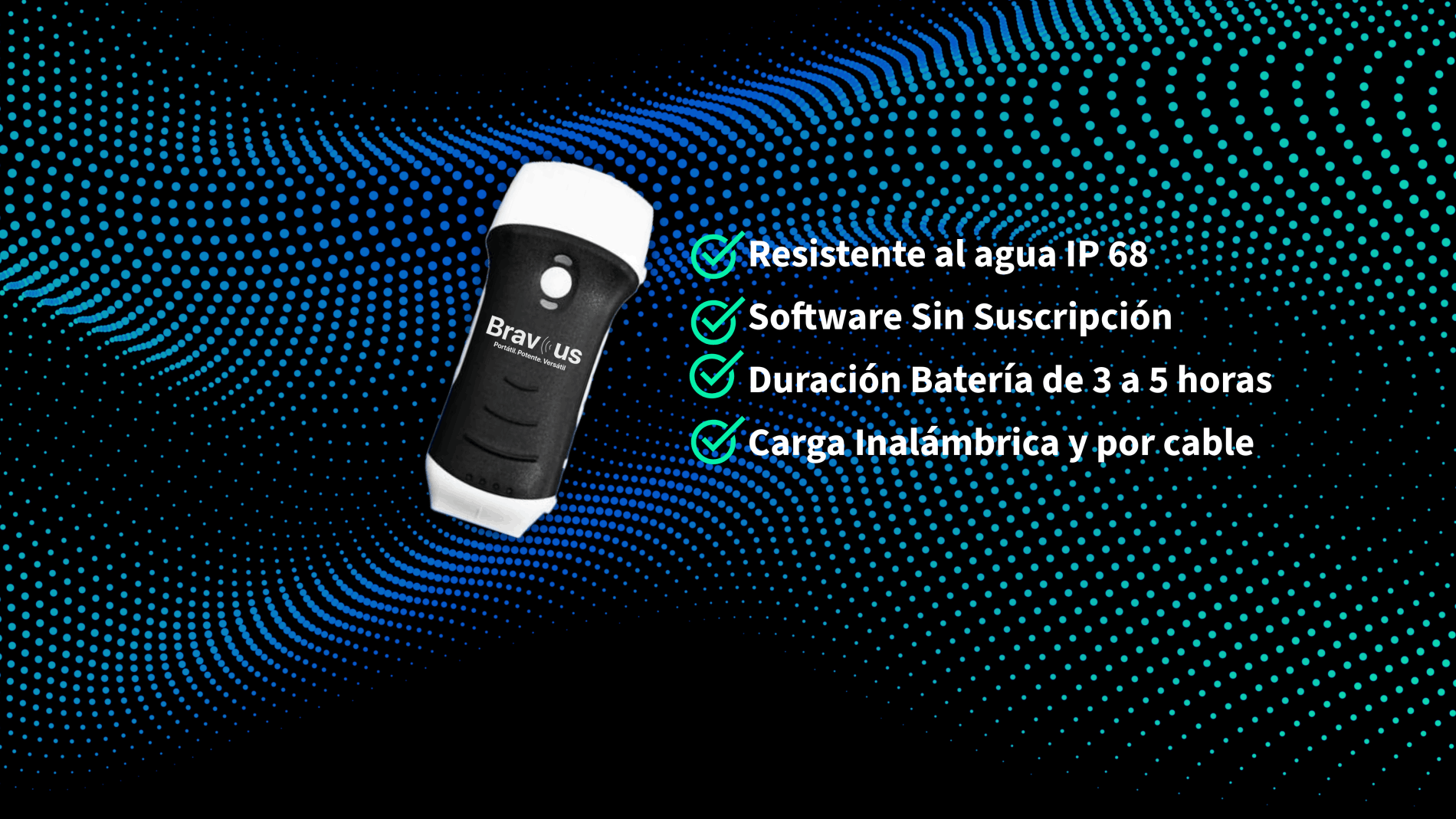 El ecógrafo portátil inalámbrico Brav-us garantiza una conexión wifi directa y estable a su dispositivo móvil o tablet (sin puertos ni cables), lo que hace que sus consultas sean totalmente inalámbricas y sin incomodidades. Adicionalmente nuestros equipos permiten la carga inalámbrica.